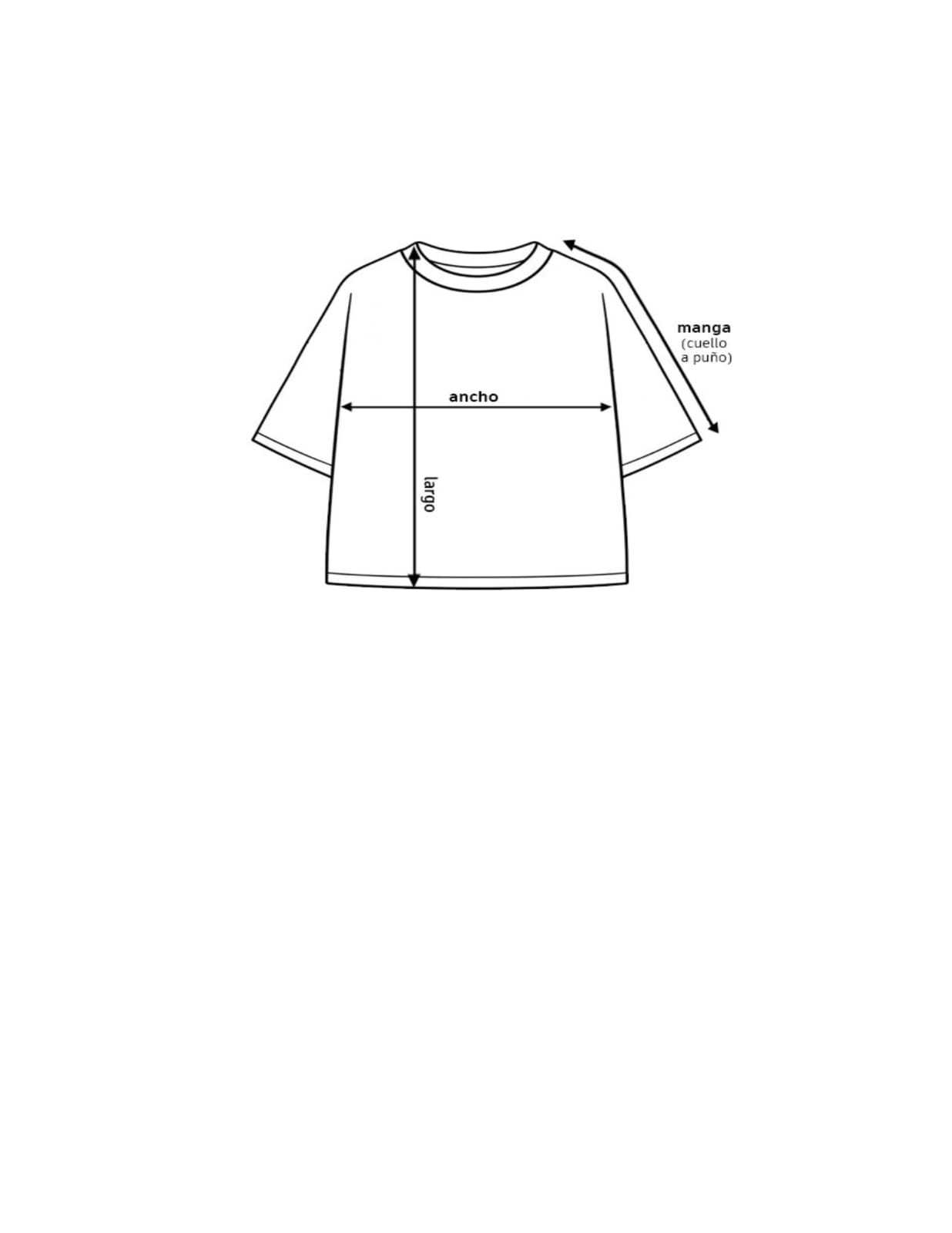 Colocá la remera sobre una superficie plana y compará tus medidas con la infografía y la tabla a continuación para elegir tu talle ideal. Esto es especialmente útil para remeras oversize.